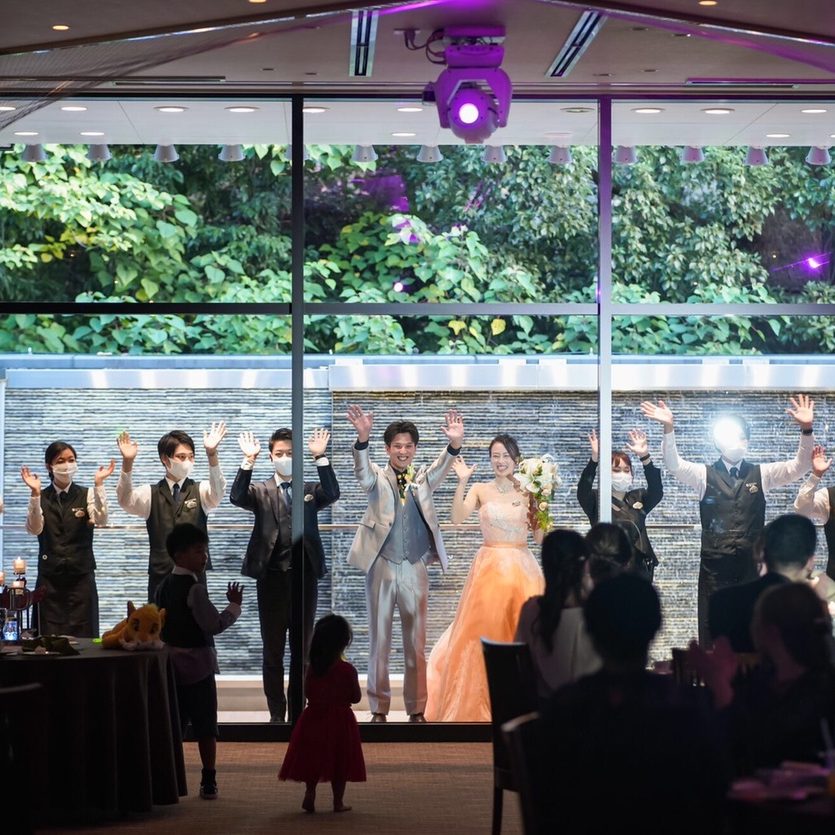 演出はゲストから写真を送ってもらいムービーに出演してもらったり、余興もゲスト参加型のものを、料理は試食会に参加し意見をたくさん投げ、ゲストが喜ぶ内容など悩むこともたくさんありましたが、当日はゲストの方々がたくさん笑っている顔を見ることができ、私たち夫婦も大満足でした。
