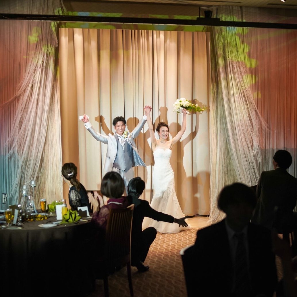 演出はゲストから写真を送ってもらいムービーに出演してもらったり、余興もゲスト参加型のものを、料理は試食会に参加し意見をたくさん投げ、ゲストが喜ぶ内容など悩むこともたくさんありましたが、当日はゲストの方々がたくさん笑っている顔を見ることができ、私たち夫婦も大満足でした。