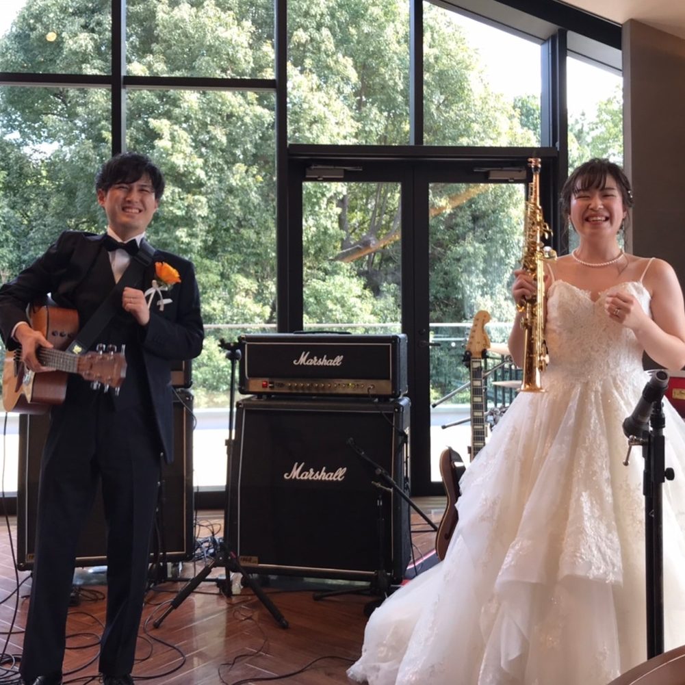 バンド演奏を行ったり、ふたりとも楽器を携えて入場したりと、エキサイティングな演出で皆さんに楽しんでもらいました。