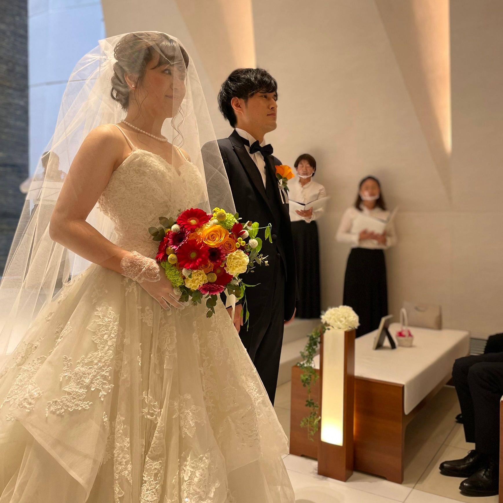 コロナ禍でも、感染対策をしっかり行ってくださった式場のおかげで安心して当日も過ごすことができ、おかげで思いっきり晴れの日を楽しむことができました。