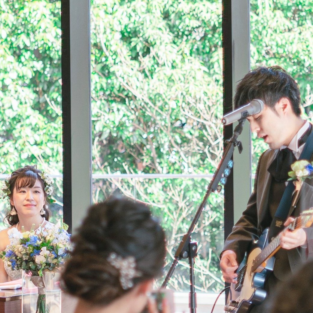 また、ファーストバイトの前に、“ファーストセッション”と題し、新郎新婦初めての共同演奏をギター&サックスで行いました。新婦の素敵なアイデアから生まれた演目で、ゲストに楽しんでもらうのは勿論、我々にとって一生忘れることのない最高の体験になりました。