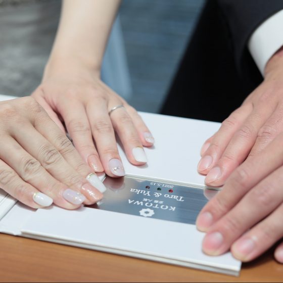 最後の決め手は、見学を担当していただいた武島さんです。2人にはぜったいKOTOWAが合ってる!という強いアプローチをかけてくれました。ワガママな私たちの要望を聞き逃すことなく、最後まで付き合ってくださりこんな熱意のあるプロデューサーさんがいる会場は間違いない!と思いました。