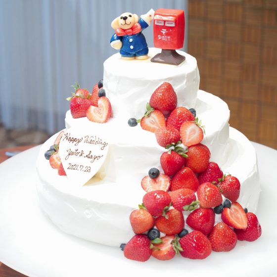 その中でも特にお気に入りのぬいぐるみは一緒に入場して、ケーキにもプラチョコとしてのせていただき、高砂で最後まで一緒に式を楽しめたのが印象深いです!笑