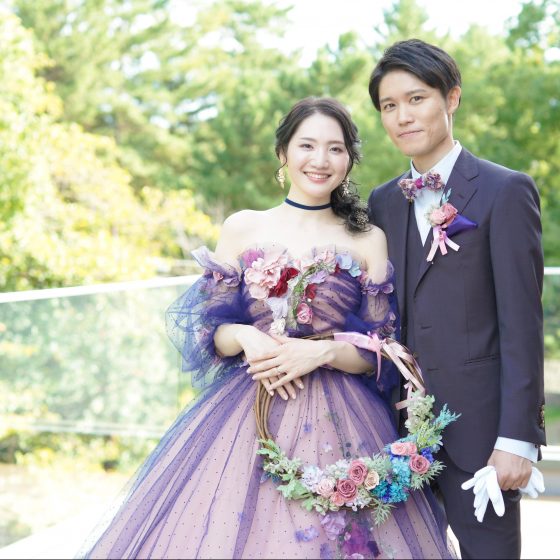 花嫁のウェディングドレスとお色直しで着た桂由美ブランドのカラードレス!ここにこだわったかわりにその他はできる限り値段を抑えました。