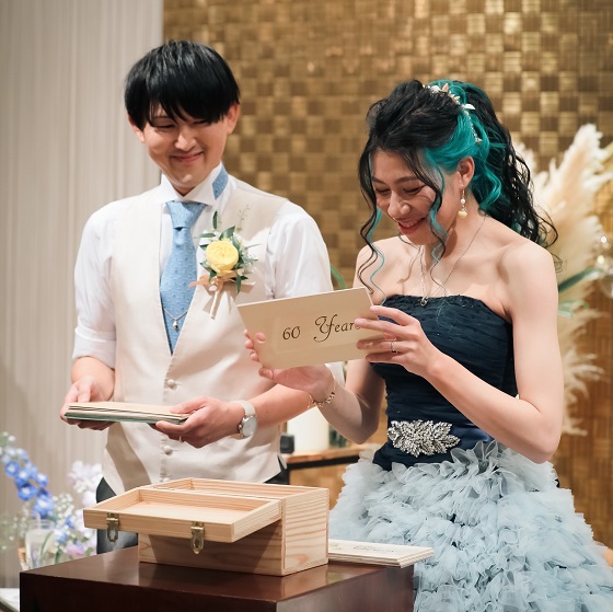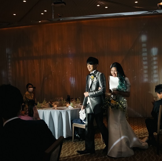 今まで、出会ってきた人たちのおかげで今の私たちへと繋がってるいることを大切にし、私たちだけがメインではなく、ゲストの皆様全員が、「役者」として参加できる結婚式を目指しました。