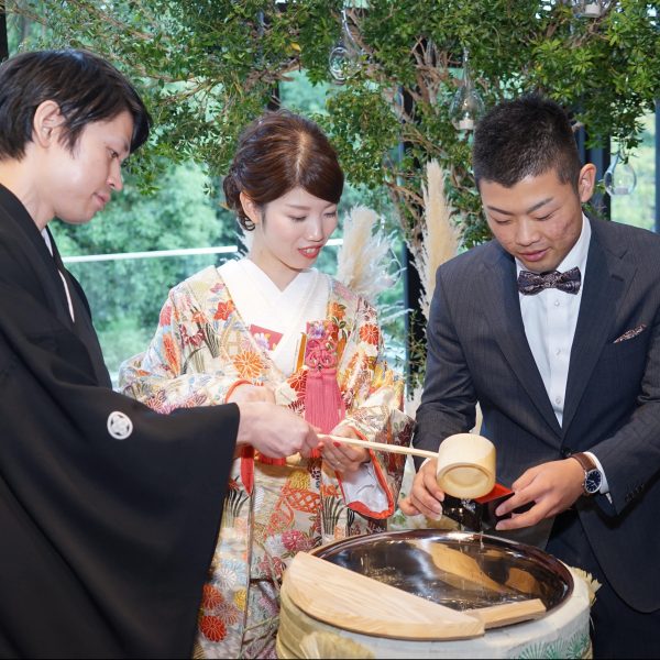 チャペルではなく八坂神社での神前式だったので、母親からのベールダウンが無い代わりに、「紅差しの儀」を行いました。結婚式の前に家族だけの時間が作れ、その時の映像も残して貰えて、かけがえのない思い出になりました。