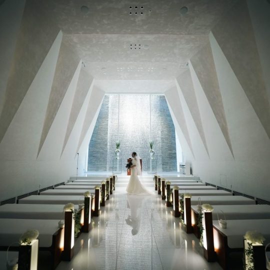 チャペルの写真を見てふたりとも即決でした。天井が高く、滝が流れている会場は他にはありませんでした。また、川﨑さんにやりたいことを全て話し、「やりましょう!できます!」と言っていただいたのは純粋に嬉しかったです。