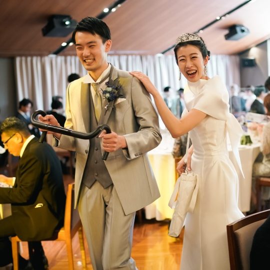 恥ずかしがり屋な性格で、人前でテンションを上げるのが苦手でしたが、スタッフさん全体で会場を盛り上げてくれたり、逐一話しかけてくれたりとやりやすい雰囲気の中思い切って楽しむことができました。招待した友人や親族から楽しかったと声をかけてもらえて、大満足の時間になりました。(幸希)