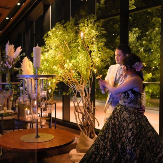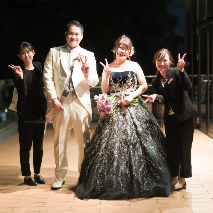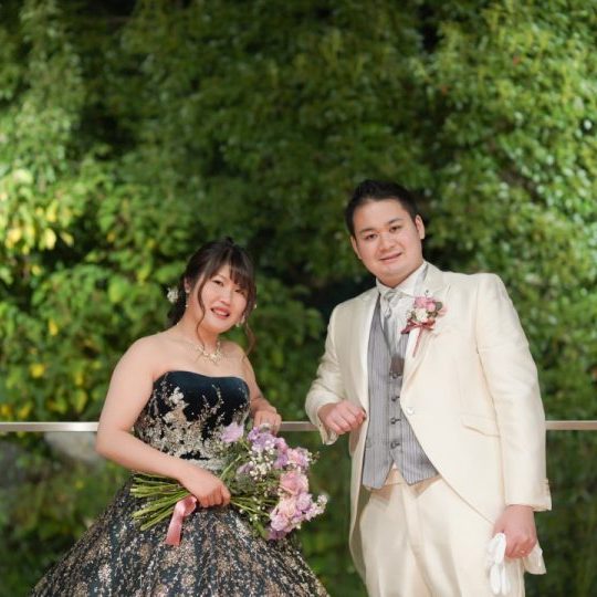 また、会場のテラスは木々が溢れるナチュラルな雰囲気だったため、会場の雰囲気やカラードレスもその雰囲気に合うように検討しました。
