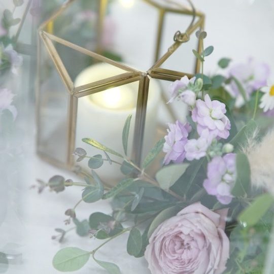 2つ目は雰囲気で、夕方から夜にかけての式・披露宴だったため、暗さを生かしたランタンやキャンドルなどの演出を検討しました。