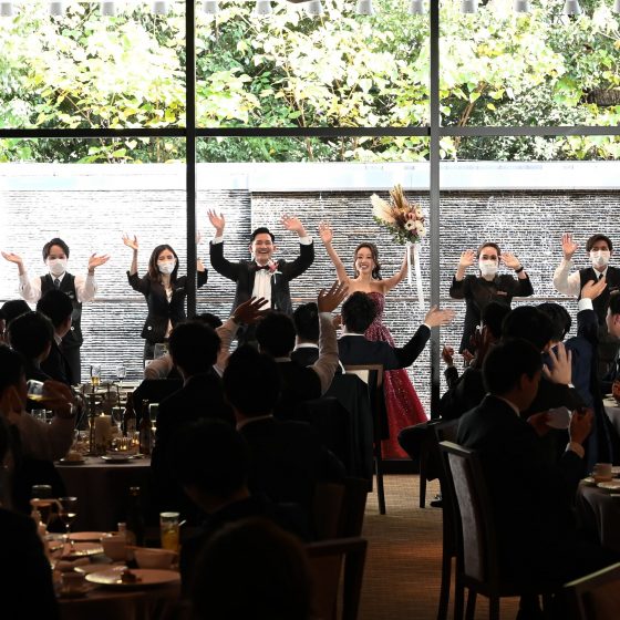 披露宴ではテーマパークに来た時のようなワクワク感を感じていただきたいと考え、入場前のBGMと司会進行についてはテーマパーク風に演出していただきました。