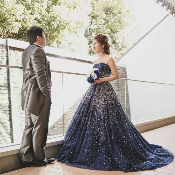 プラネタリウムの演出も私は密かに星をテーマにしてドレスとイヤリングを選んだので。それに合っていてドレスもキラキラしていて、今回呼べなかった方達にも写真を見てもらった時にキラキラしていると言ってもらえとても満足でした!!