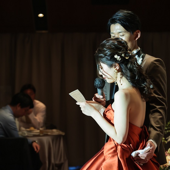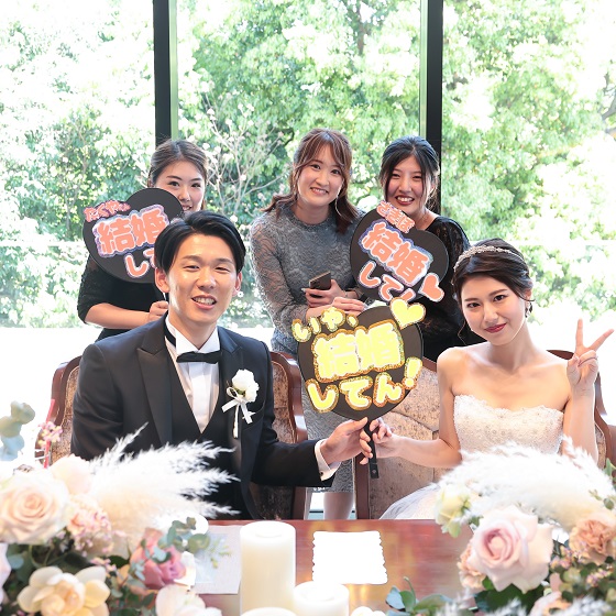 友達からは、とにかくたくさん泣いて笑って楽しかったと言ってもらいました!また、親族からは、式が良かったというのはもちろん、式場のスタッフさんの対応がすごく良かったと言っていただきました。高齢の出席者も多かったため、心配な点もありましたが、丁寧な対応をしていただき、親族も大変満足している様子でした。演出の面でも、天井のスクリーンの映像が凄かった〜と言ってもらえました!