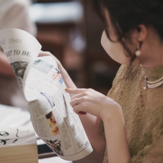 なかでも、フラワーシャワーの代わりに立体の星を千個以上折った手作りのスターシャワーや、ゲストの皆さんとのエピソードやメッセージを新聞の番組欄をイメージして書き込み、号外です!と言いながらオリジナル新聞を配っていただいたりしたところがポイントでした。