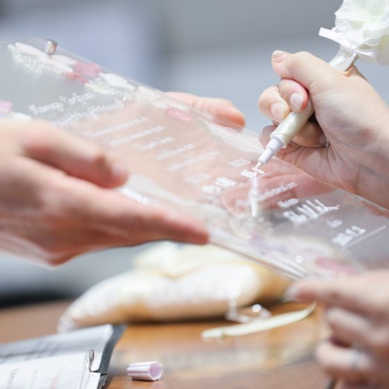 ゲストの皆さんが「結婚式来て良かった」「結婚式っていいな」と思っていただけるように、出来るだけ皆さんに参加してもらえるような演出だったり、ウェルカムスペースの小物を準備したりしました。