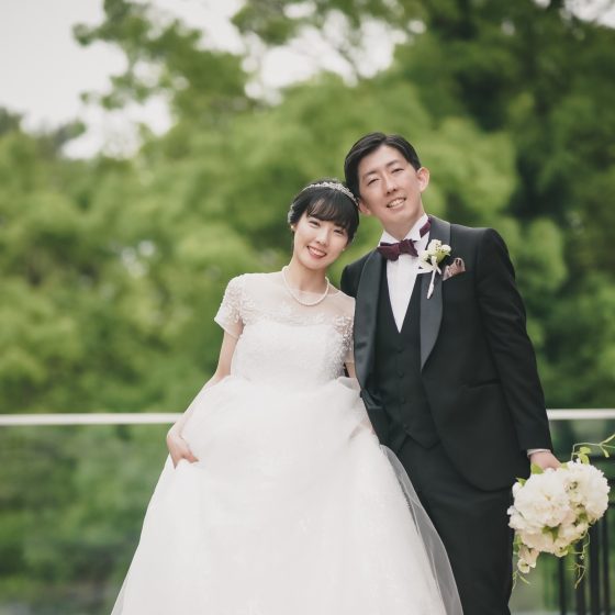 披露宴では雨も上がり、テラスでの撮影ができたことも嬉しかったです。