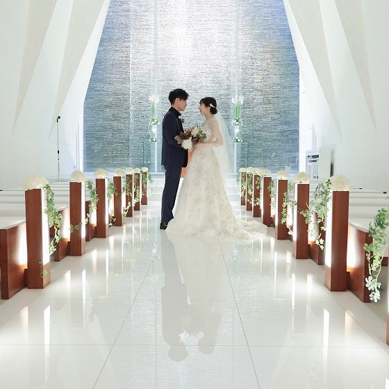 チャペルは天井がとても高く、開放感があり、厳かな雰囲気も兼ね備えており、入った瞬間から惹かれました。