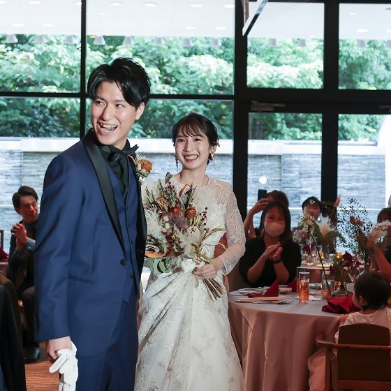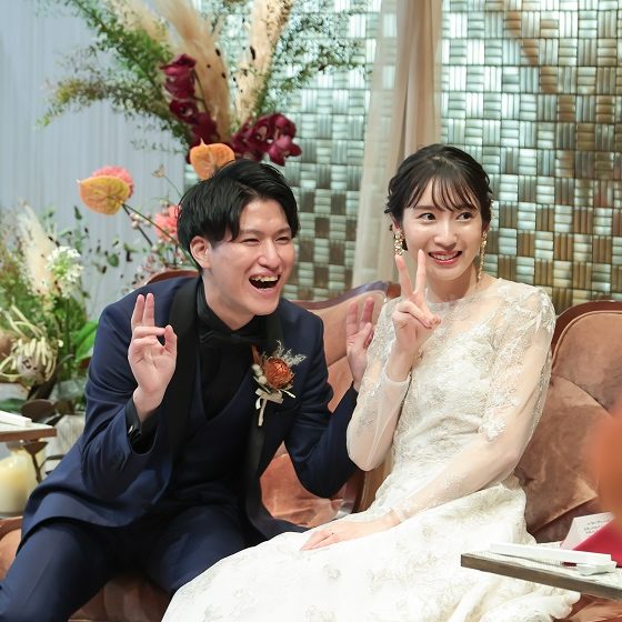 また、何より2人の結婚式ではしんみりとした雰囲気は出さず、終始笑顔で、楽しい時間を演出したかったので、歓談を多く取りました。それもあってか、ゲストの皆さんにも本当に楽しい披露宴だったと言っていただき、2人らしい結婚式になり満足しております。