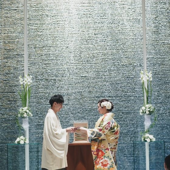 色打掛と白紋付き袴で式を挙げたいと思い、和装に似合う式場を探しており、AYANEの金色に光る披露宴会場に惹かれました。
