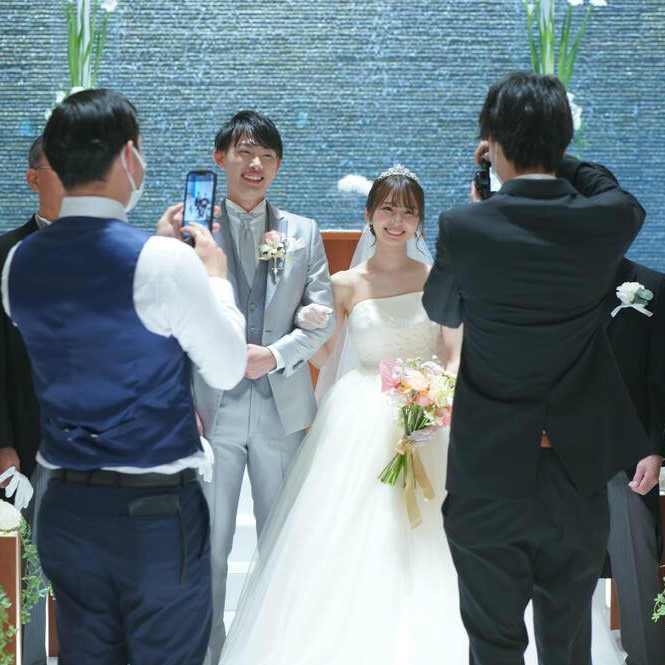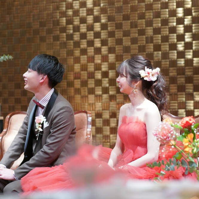 私たちはお互いの地元が遠方であるため、親族と親しい友人のみを招待し感謝の気持ちを伝えたいと思い結婚式を挙げました。お互いのことを紹介しつつ、ゲストの皆様にも楽しんでもらえるようなアットホームな式にしたいと考えていましたが、理想としていた結婚式をあげることができました。