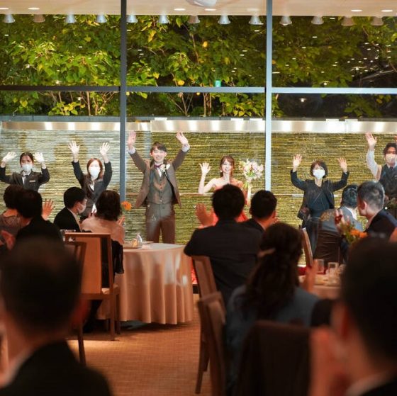 私たちはお互いの地元が遠方であるため、親族と親しい友人のみを招待し感謝の気持ちを伝えたいと思い結婚式を挙げました。お互いのことを紹介しつつ、ゲストの皆様にも楽しんでもらえるようなアットホームな式にしたいと考えていましたが、理想としていた結婚式をあげることができました。