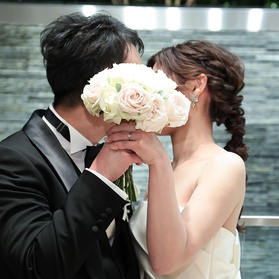 初めて見学させていただいた時に背面に広がる上空から降り注ぐ滝、地下にあるとは思えないほど明るくて純白なチャペルに一目惚れしました。扉を開けた瞬間から圧倒的な空間のこのチャペルで式を挙げたい!と強く思ったことを今でも覚えています。また披露宴会場AYANEの糸カーテンの演出も気に入り、即決しました。