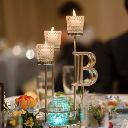 当日はゲストへのサプライズインタビューや、両家の両親によるケーキのお手本バイト、一斉点火のキャンドル演出や登場シーンなど、盛り上がるシーンもありながら、フリーラウンドでしっかりとゲストと話をする時間がとれました。