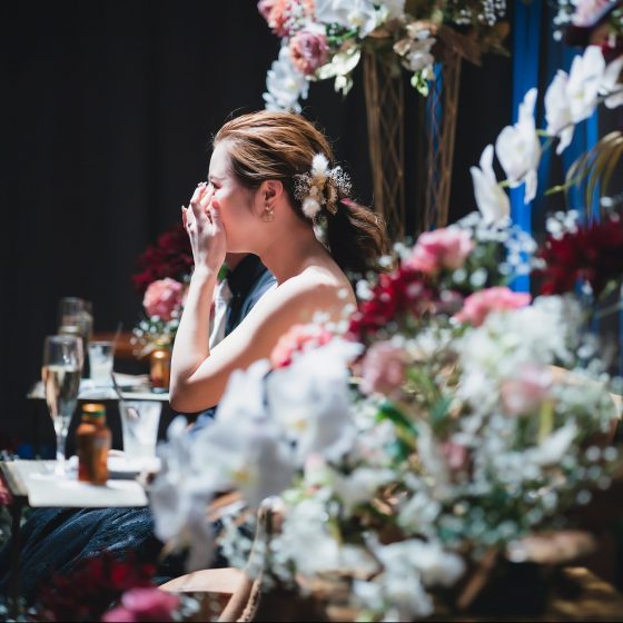 カラードレスがなかなか決まらなかったため、会場のお花の色とか雰囲気とかもなかなか決まらず、、
