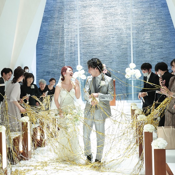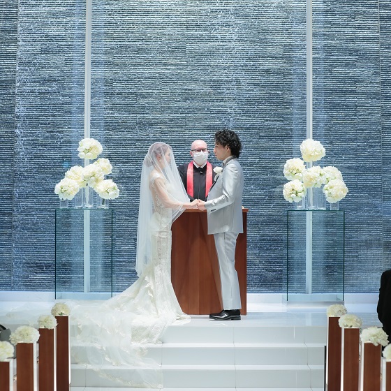 真っ白でバックに滝が流れる挙式会場に一目惚れしました。披露宴会場も3種類ある中私はayaneの会場の雰囲気が大好きでまた、糸カーテンやテラスもありゲストのみんなを驚かせられるだろうな〜と思い即決で決定しました。