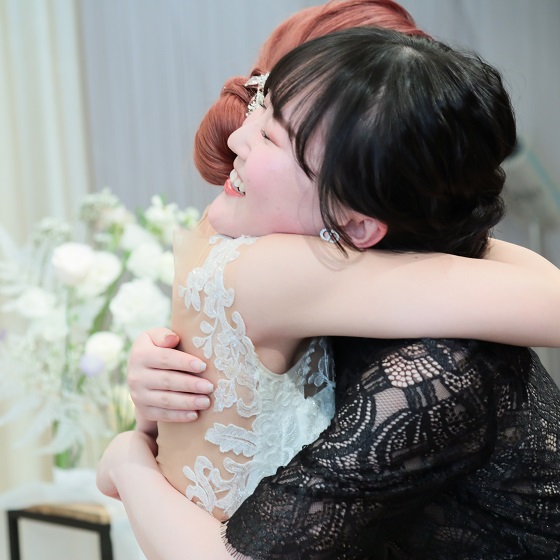 たくさんわがままを言いましたが、担当のプランナーさんも装花の方もヘアメイクの介添え人の方も明るく元気な方が多く、途中お話が盛り上がりすぎるぐらい楽しく準備を進めることができました。