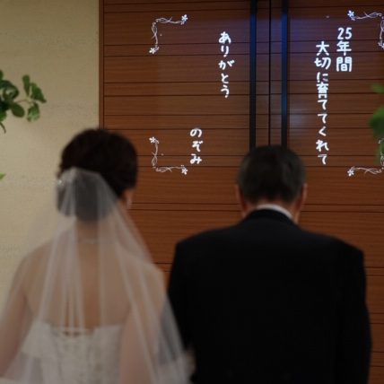 キャンドルリレーの後、キャンドルに蓋をかぶせると、蓋に書かれたゲストの皆様へのメッセージが浮かび上がる・・・♡という素敵な演出で、ゲストの皆様へのメッセージを伝えることが出来ました。会場はとても感動的な雰囲気になりました。