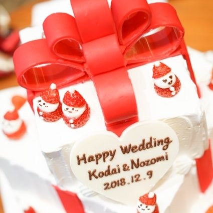 料理長とのお料理の打ち合わせも細かいところまで話すことができ、クリスマスシーズンにぴったりのイチゴサンタが乗ったウェディングケーキやデザートを当日見たときは、感動しました!