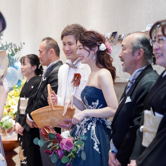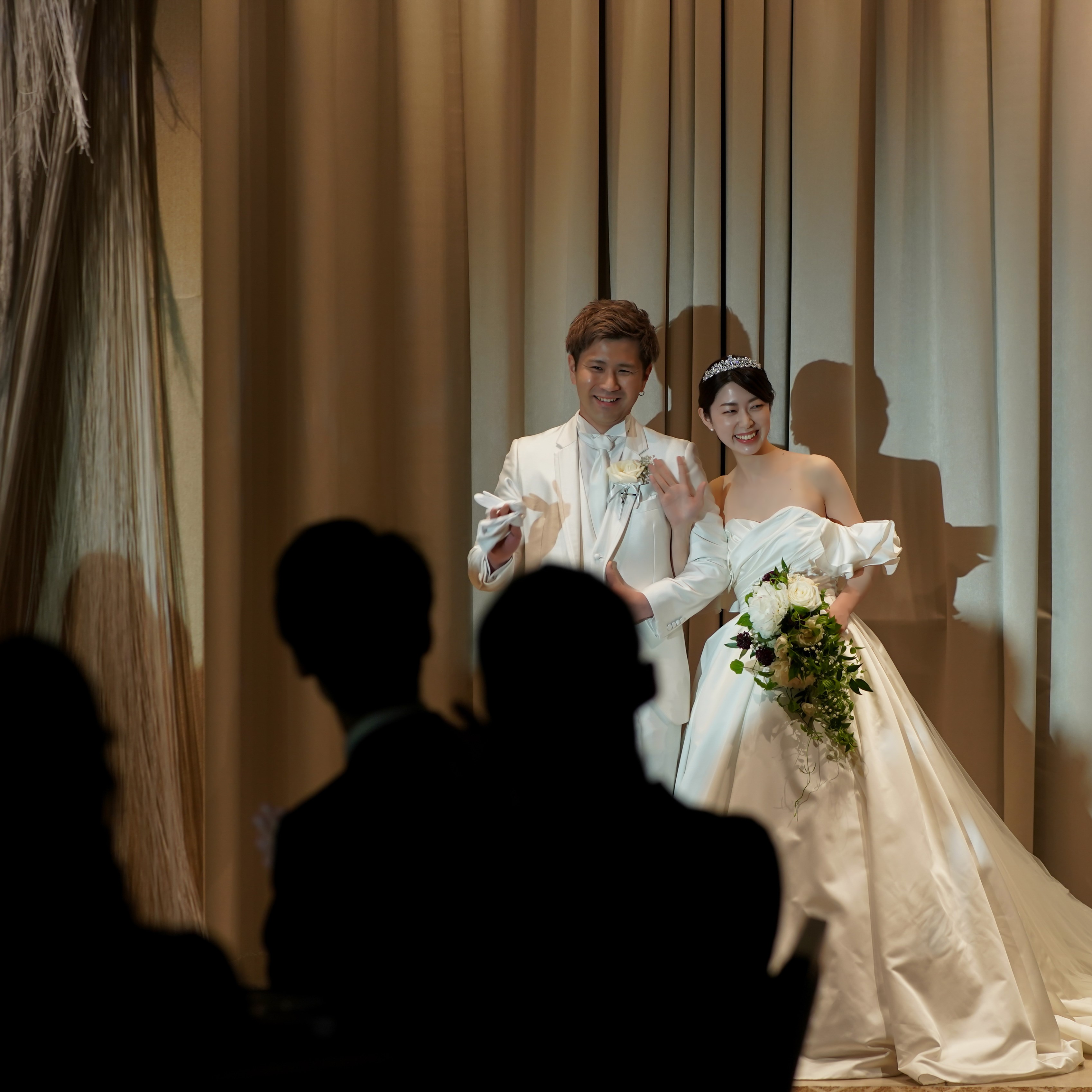 糸カーテンからの入場は、まさかそこから出てくるのか?!というゲストの反応がとても良かったです。たくさんの拍手や歓声が聞こえてきたのを覚えています。