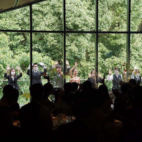 感謝の気持ちをプログラム内で伝えるだけでなく直接伝えたいという思いと、みんなと写真が撮りたいという願いから歓談の時間をゆったりと取っていただきました。そのおかげでみなさんと喋ることができ、ナチュラルな雰囲気でゲストとの距離が近い理想どおりの式となりました。