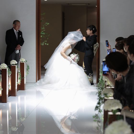 滝が流れているチャペルを雑誌で見た時にこれだ!!!と2人共思い、早速式場見学会予約へ…