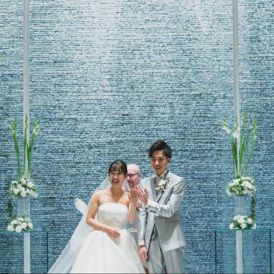 チャペルに流れてる滝とチャペルの白い感じがとてもマッチしてすごく綺麗でした。
