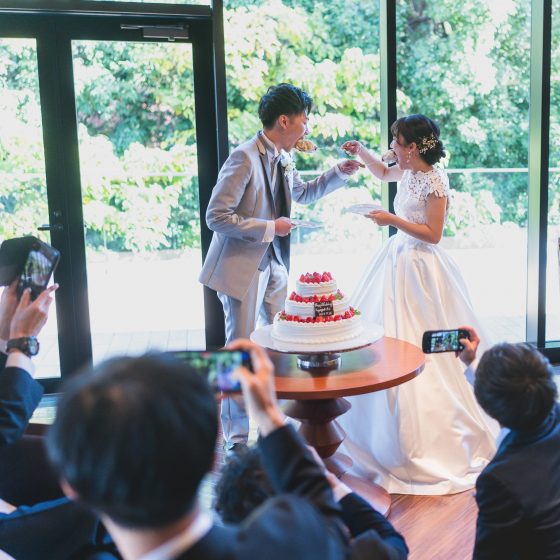また実際の式で行われる演出を実際の披露宴会場で見せていただき感動しました。HARUKAの会場はカーテンを開けると緑が美しくウッドデッキもあるので