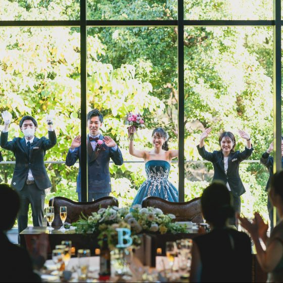 また実際の式で行われる演出を実際の披露宴会場で見せていただき感動しました。HARUKAの会場はカーテンを開けると緑が美しくウッドデッキもあるので