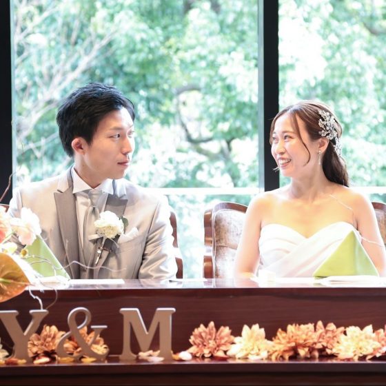 披露宴会場(HARUKA)の色味など雰囲気が自分たちの思い描いていたイメージとぴったりだった。HARUKAから円山公園の緑が見えるのがとても魅力的だと思った。またバルコニーから入場する事が出来るなどゲストの皆様へのサプライズ感を演出出来ること。