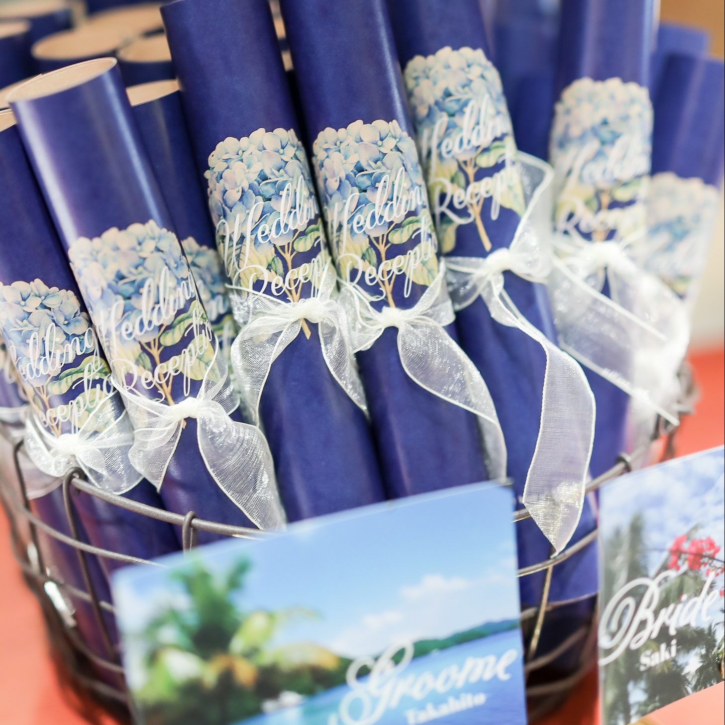 式場の雰囲気はリゾート感を出しつつ、6月なので紫陽花をつかいとっても可愛くしてもらいました。
