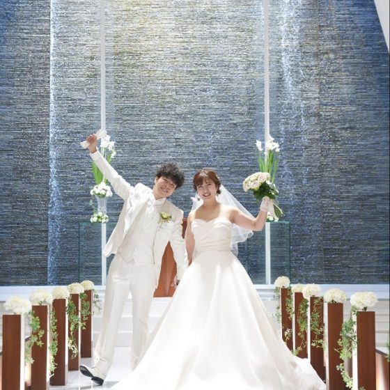 建築関係の仕事をしているので、写真で見た真っ白なチャペルの7mの天井と滝に圧巻されたことから始まり、HARUKAのナチュラルさも大好きで両方味わえることに魅力を感じました。