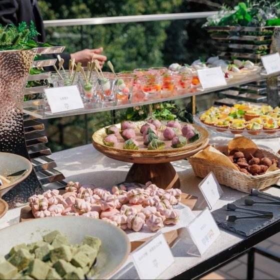 ゲストのみなさんが楽しんでもらえるよう、ライブのようなレーザー演出をいれたり デザートビュッフェでは、甘いものが苦手な方も楽しんでもらえるよう、ごはんものも取り入れたプレミアムビュッフェにしました。