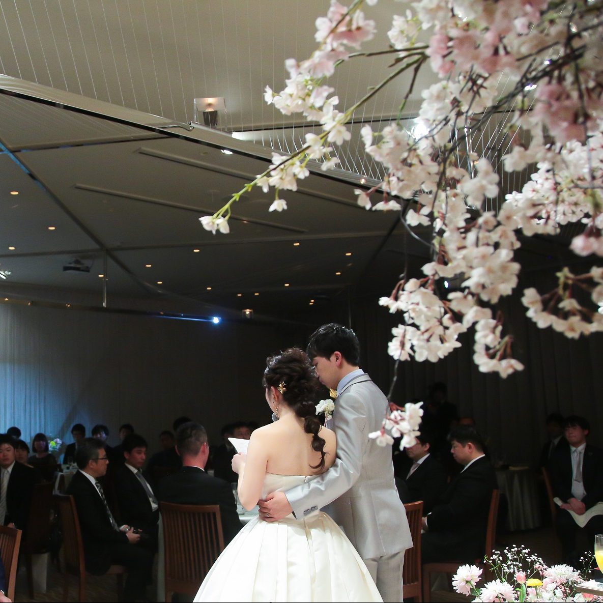 春爛漫なあたたかい雰囲気の中、フォトラウンドを行い、ゲストの方全員とお話することができて、忘れられない時間となりました。ゲストの方からは「今までで最高の良い式やった!」「お料理が美味しかった!」と嬉しい声をたくさんいただきました!夫とは「もう一回、次はゲストとして自分たちの結婚式に参列したいね」と話しています(笑)
