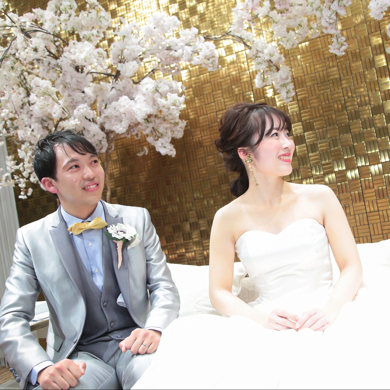 一番こだわったのは高砂席のコーディネートです。結婚式のテーマである「春の訪れ」をゲストの方と一緒に楽しむために、春のお花畑や桜の写真からインスピレーションを得て、こうしたい!が詰まったデッサンを持ち込みました。フラワーコーディネーターの神谷さんご自身もAYANEで披露宴を結ばれていて、当日の写真を見せていただきましたが、どれもカッコいいコーディネートばかりで…こんなに素敵なコーディネートをされた方に担当してもらえるなんて幸せ者やなぁと思っていました(笑)当日は、私のデッサンと神谷さんのご提案がミックスされた高砂席ができていて、とても嬉しかったです!高砂席が写った写真は、どれも春爛漫の雰囲気いっぱいでとても満足しています♡