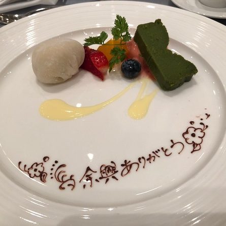 披露宴はバタバタしないように3時間と長めに時間を設定したこと、テラスに喫煙所を設けることも可能と聞きましたが、ご招待した方の中には妊婦様もいたので、披露宴会場に少しでもタバコの匂いがするのが嫌で、喫煙所は待合室横にある喫煙所のみにしたこと、余興をしてくれた友人はきっと何度も打ち合わせをしてくれていたので、感謝の気持ちを当日伝えるため、料理のデザートプレートに「余興ありがとう」とチョコレートで添えていただいたこと、冬の結婚式で寒いので移動をなくすためにも二次会もKOTOWA京都八坂にお願いしたことなどなど。