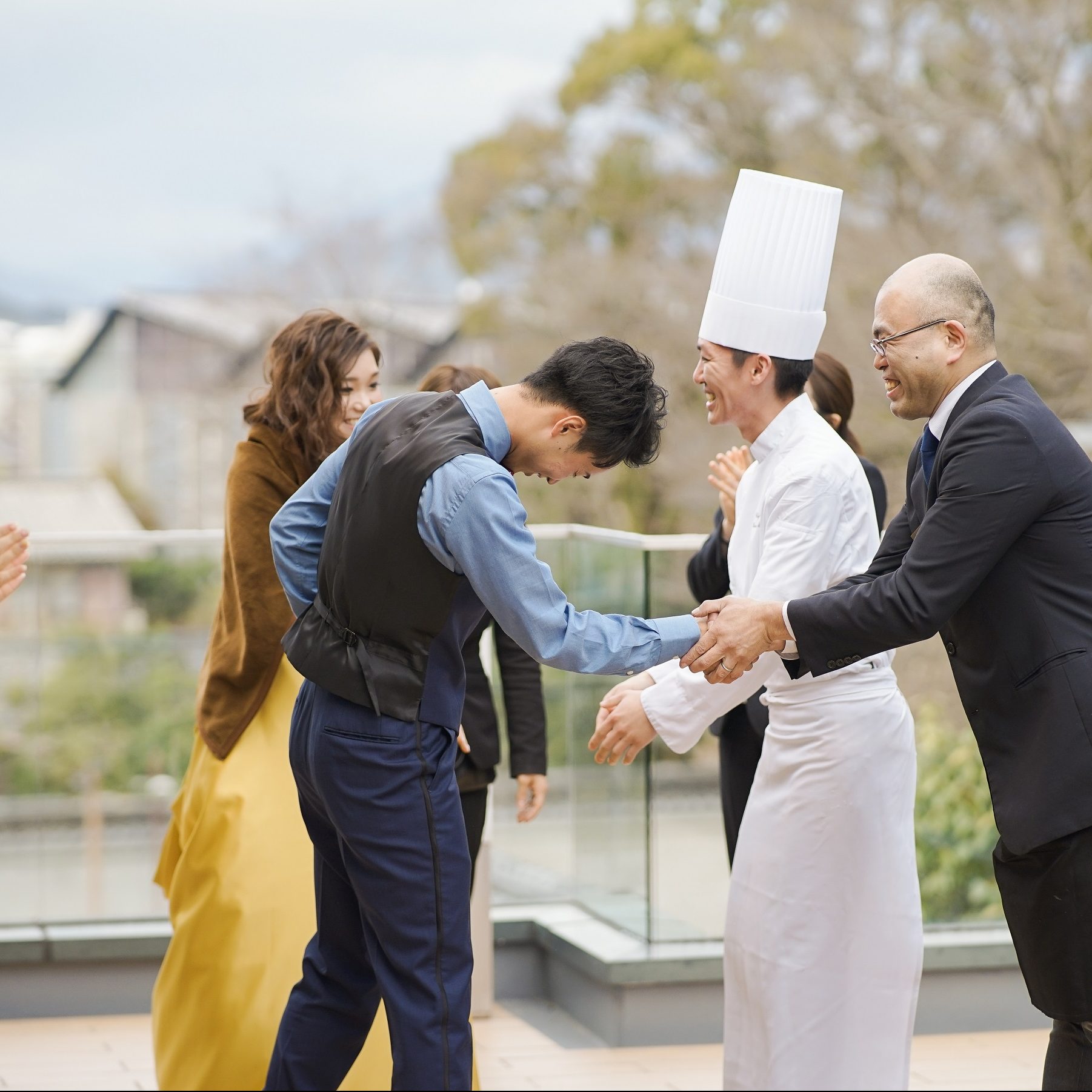 京都らしい風情ある庭園に憧れがありましたが、ゲストの中には、高齢者や車椅子の方もいましたので、「受付→チャペル→披露宴」全てが縦の移動で完結できる点は大変魅力的でした。「HARUKA」の会場であれば、目の前に円山公園の緑が広がっているので、京都らしさも織り込むことができると思いました。