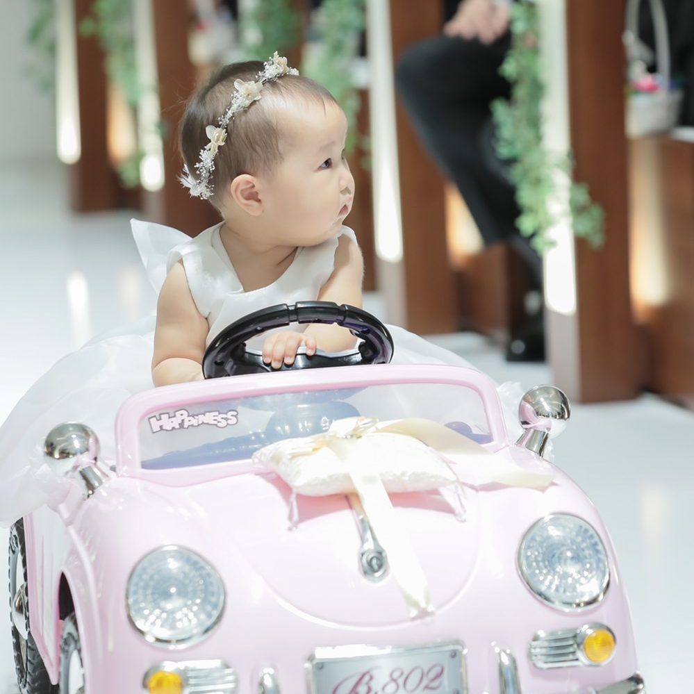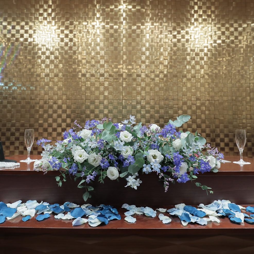 新郎がある有名なアーティストのファンだったため、エンターテイメント重視でポップでファンキーな宴にしました。