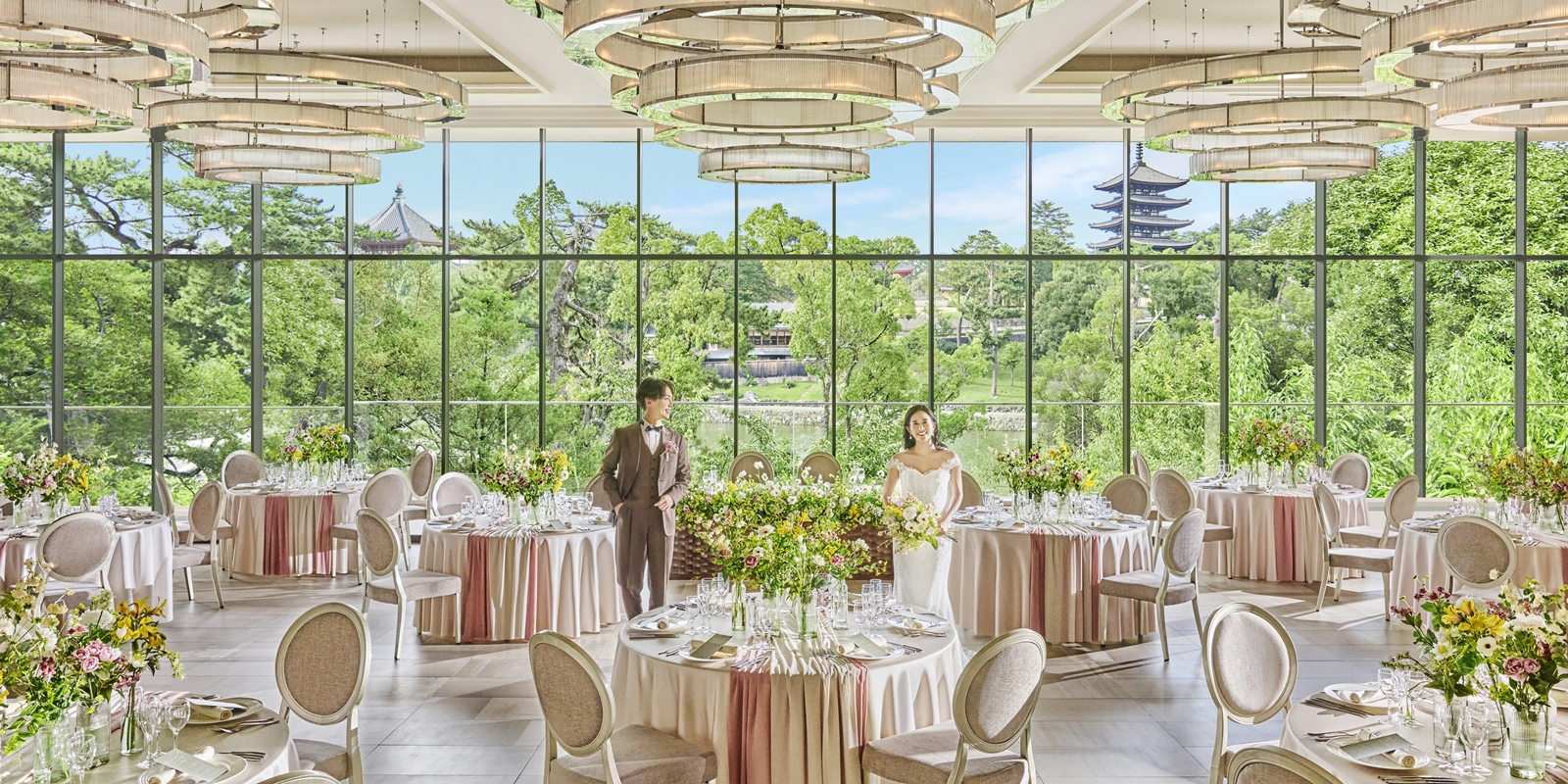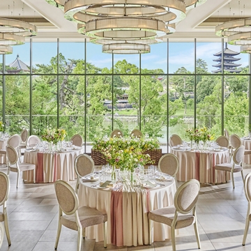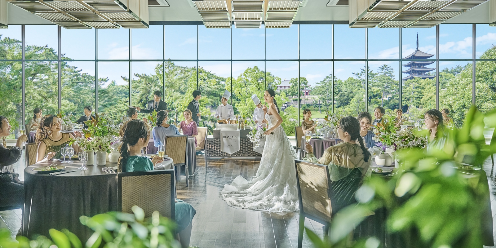 近鉄奈良駅から徒歩5分。五重塔を望む奈良らしいロケーションの中で、心に残るウエディングを。