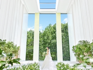 100名様まで着席できる広々とした会場内には、オリジナルドリンクや入れたてのビールでおもてなしできるバーカウンターも完備。また、専用のテラスでは心地よい風を感じながらデザートブッフェも愉しめ、ゲストとのおしゃべりもはずみます。緑をバックに撮影する、笑顔に囲まれた記念写真も素敵な思い出になります。