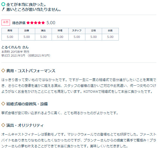 「実際にKOTOWAで結婚式を挙げた方は、どうだったのかな?」